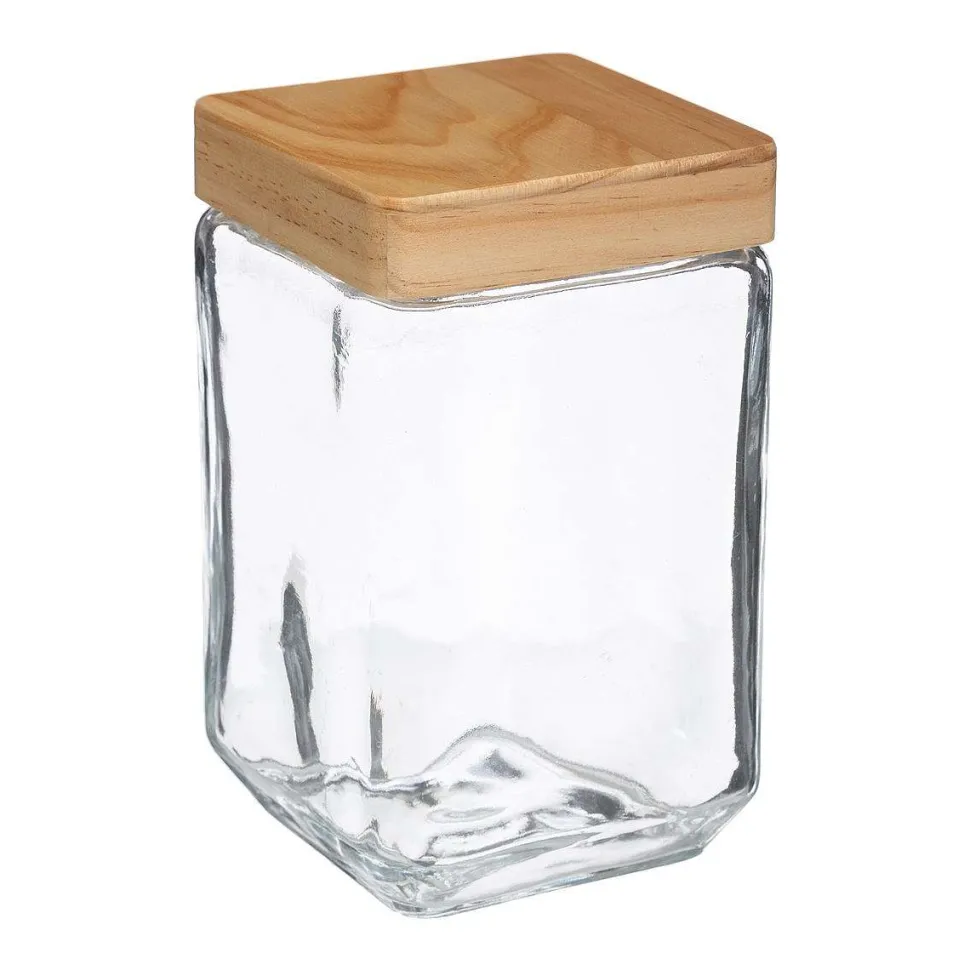 Bocal Carre Verre Et Pin 1.25L