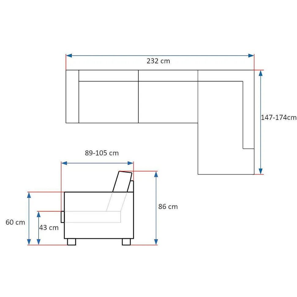 L. 232 X L. 174 X H. 86 Cm