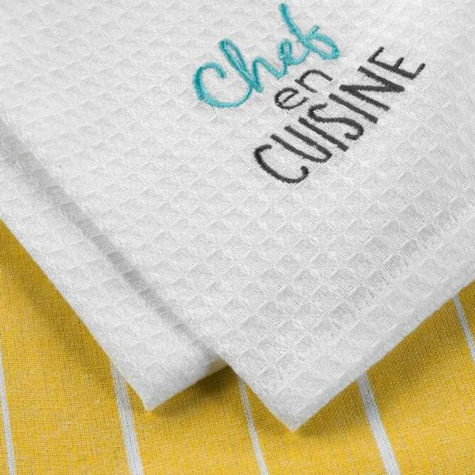 maxibazar 2 Torchons 50X70Cm Coton Nid Abeille Brode Chef En Cuisine
