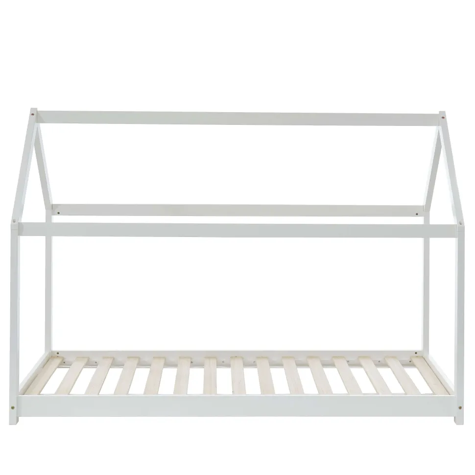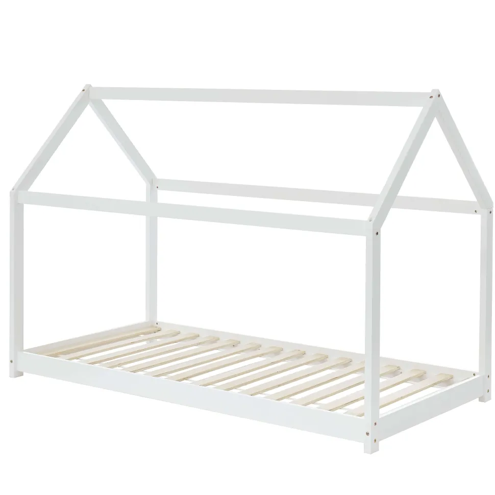 Lit Enfant Cabane Tiny Pin Blanc Sommier 90X190Cm